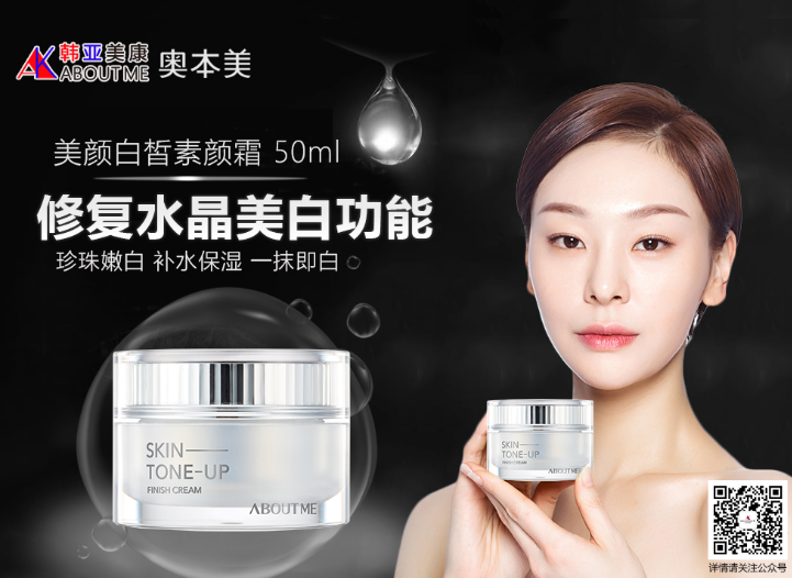 韩国ABOUT ME美颜白皙素颜霜具有美白,提亮肤色,提亮气色,隐形毛孔,易上色,长久不掉色,清爽,祛斑。主要成分包括:柠檬皮,花,茎,叶提取物,缓解肌肤衰老,深层滋润;蕴含珍珠粉成分,(珍珠,蓝宝石,钻石、紫水晶)打造宝石般透亮肤色;二氧化钛,镇定肌肤,提亮肤色;烟酸胺,美白功效,减少红血丝。使用方简单:首先使用爽肤水打底,裸妆效果更透更贴;然后用五点式涂抹,做到均匀涂抹;最后轻拍按压,让肌肤更容易吸收。
