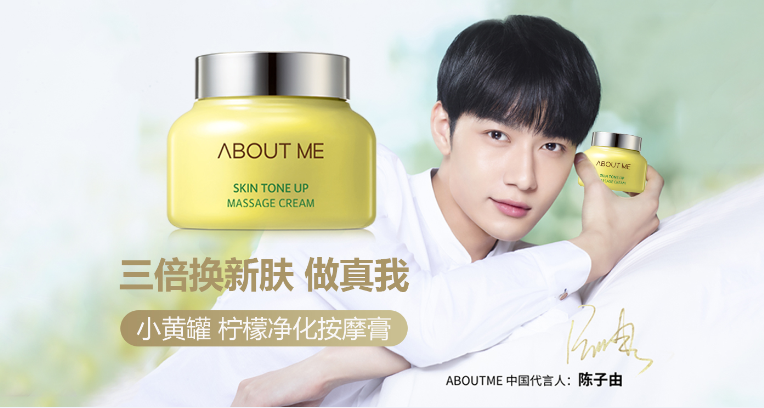 韩国ABOUT ME奥本美柠檬净化按摩膏,适合任何肤质。不同的结果源于不同的原料成分,主要成分包括:具有净化肌肤、改善角质、提亮肤色、排除肌肤废弃物质及毒素,深度疏通毛孔,有利于彩妆污排出,让水、乳、霜、精华液更加容易吸收的柠檬提取物;去除粉刺、去黑头嫩滑肌肤的蜂王浆提取物;镇定、紧致肌肤、淡化皱纹的南瓜提取物;深度疏通毛孔、保湿补水、提高肌肤弹性的竹子提取物等。柠檬净化按摩膏全球销量突破500万瓶。代言人为影星陈子由。