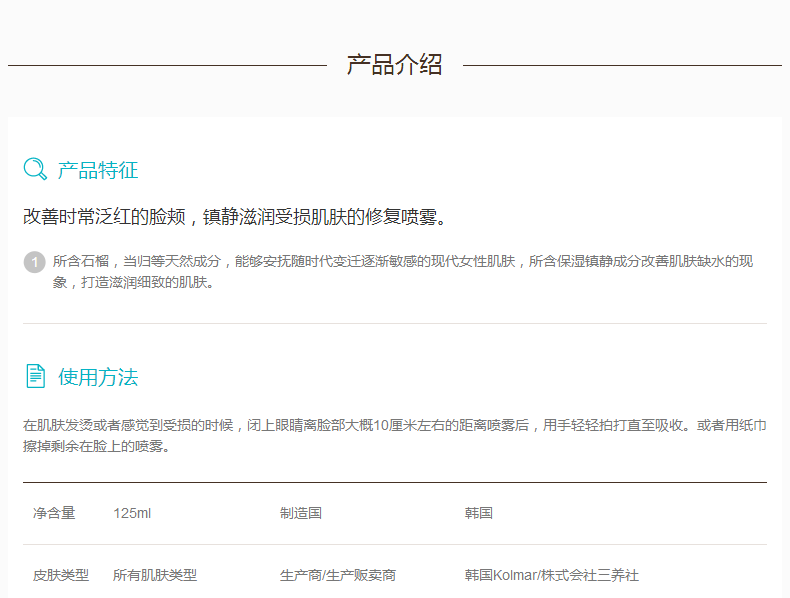 改善时常泛红的脸颊,镇静滋润受损肌肤的修复喷雾