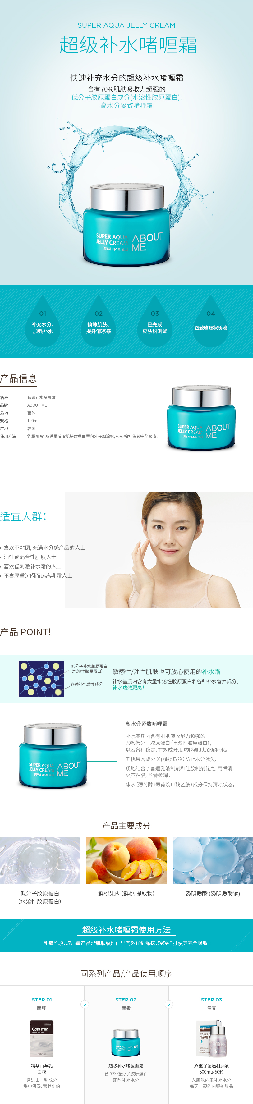 高水分补水,紧致弹力啫喱面霜