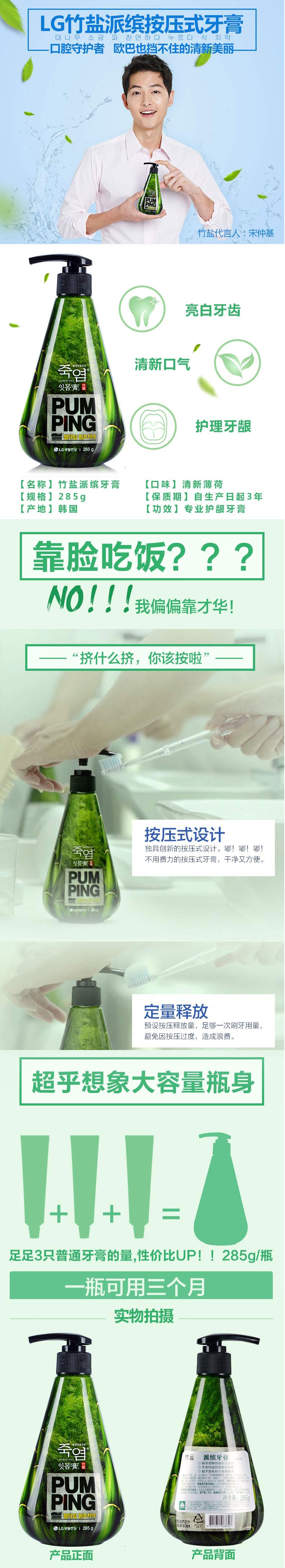 LG 倍瑞傲 按压式竹盐牙膏 285g