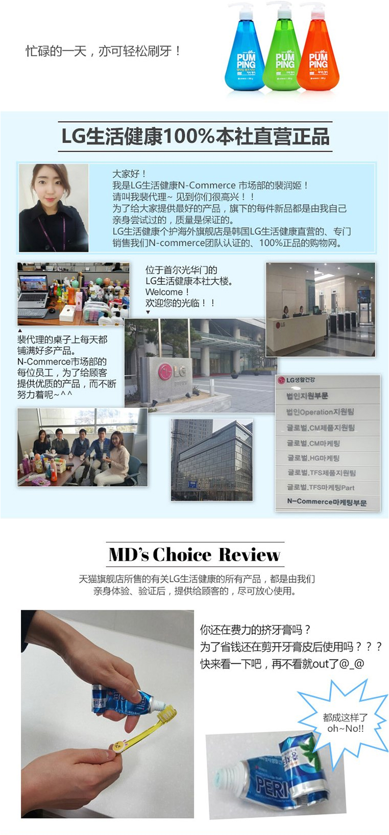 LG 倍瑞傲 按压式液体牙膏 285g 3种