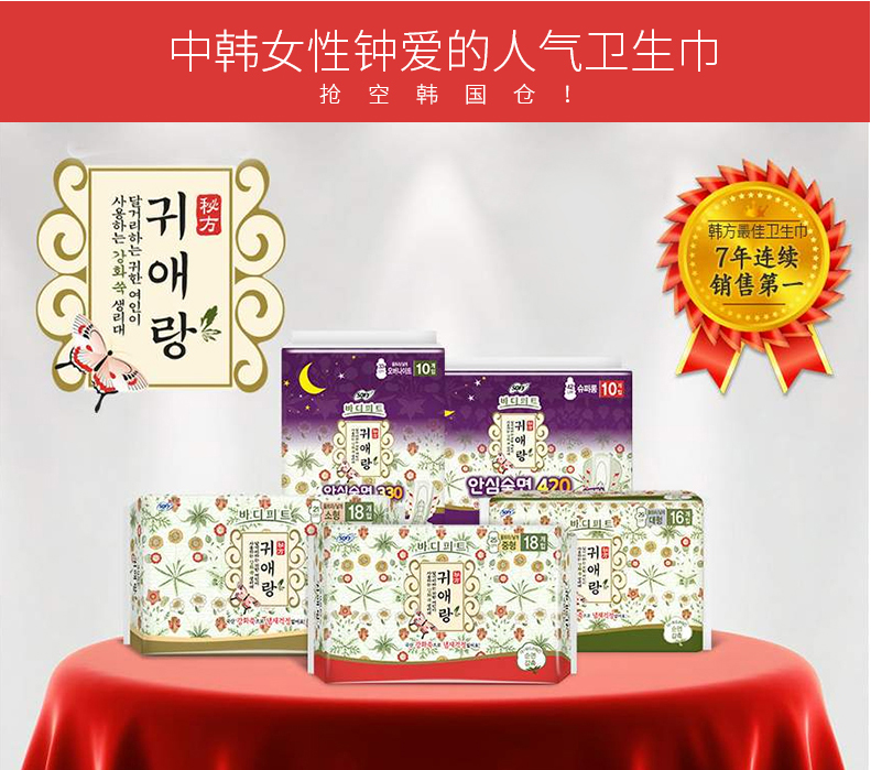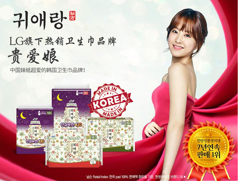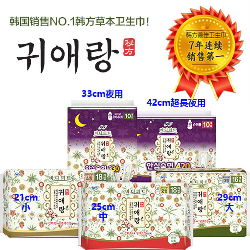- LG 贵爱娘 中草药卫生巾 小, 中, 大, 夜用,夜用超长?5种