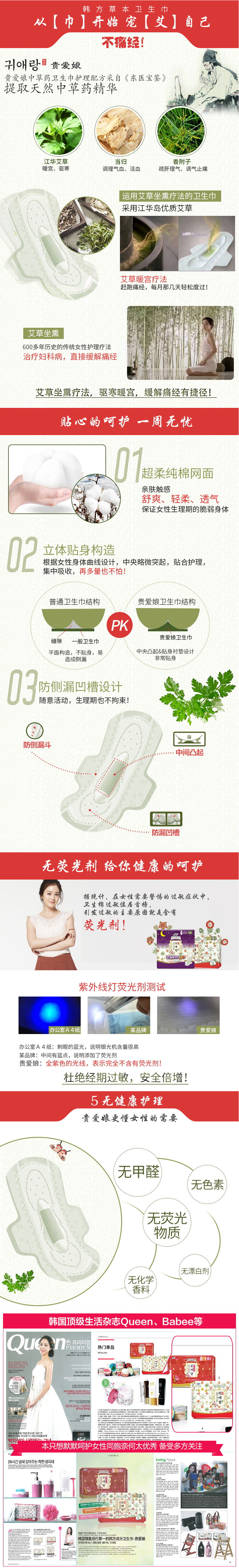 蕴含韩国产艾草提取物, 采用纯棉触感的原料特殊的日子也如同洗过一样舒爽