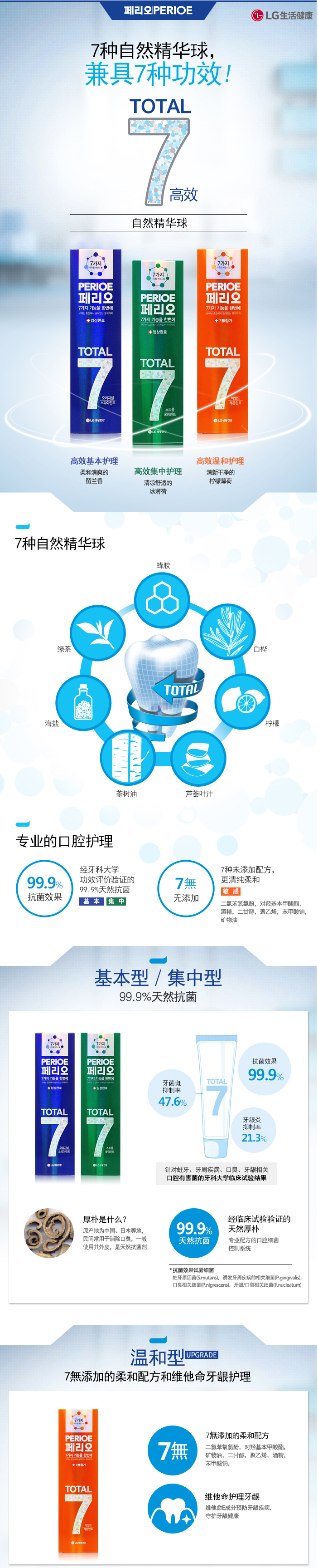 同时具备7种功能,可杀死99.9%的口腔细菌的抗菌效果,适合全家人/普通的口腔状态消费者