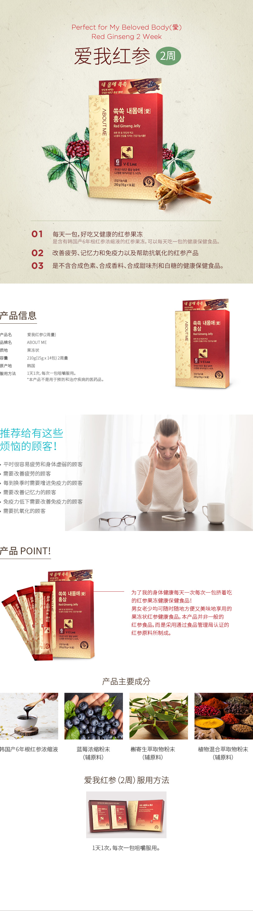 用韩国产6年根红参所制的红参果冻健康保健食品