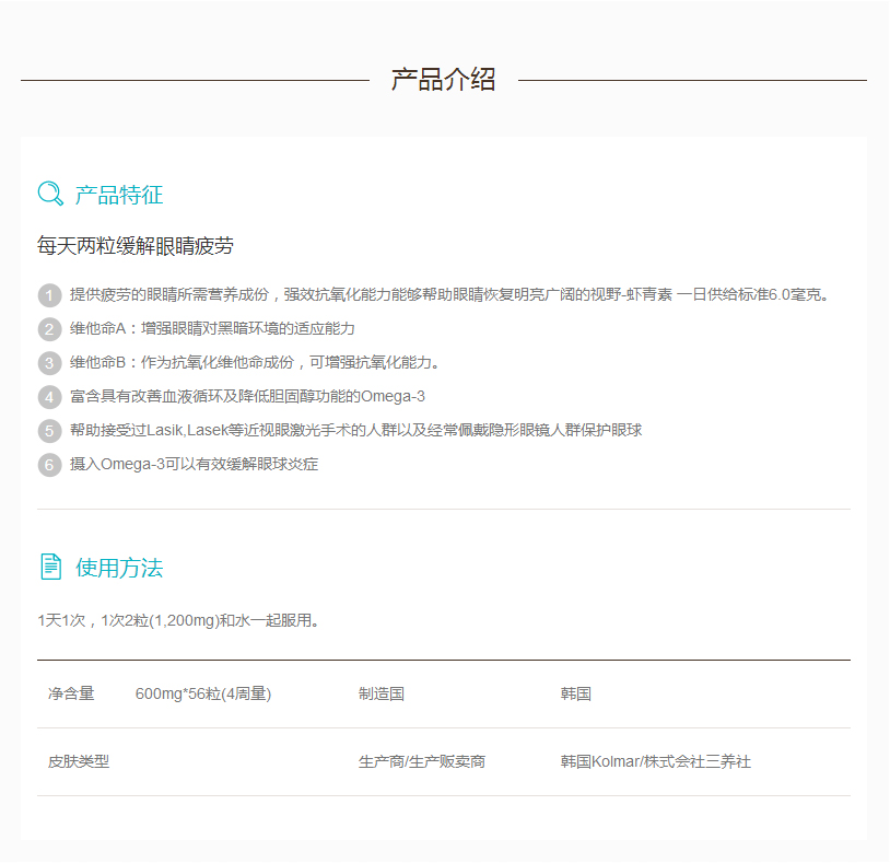 缓解眼部疲劳的智能眼 600mg x 56粒 (4周量)