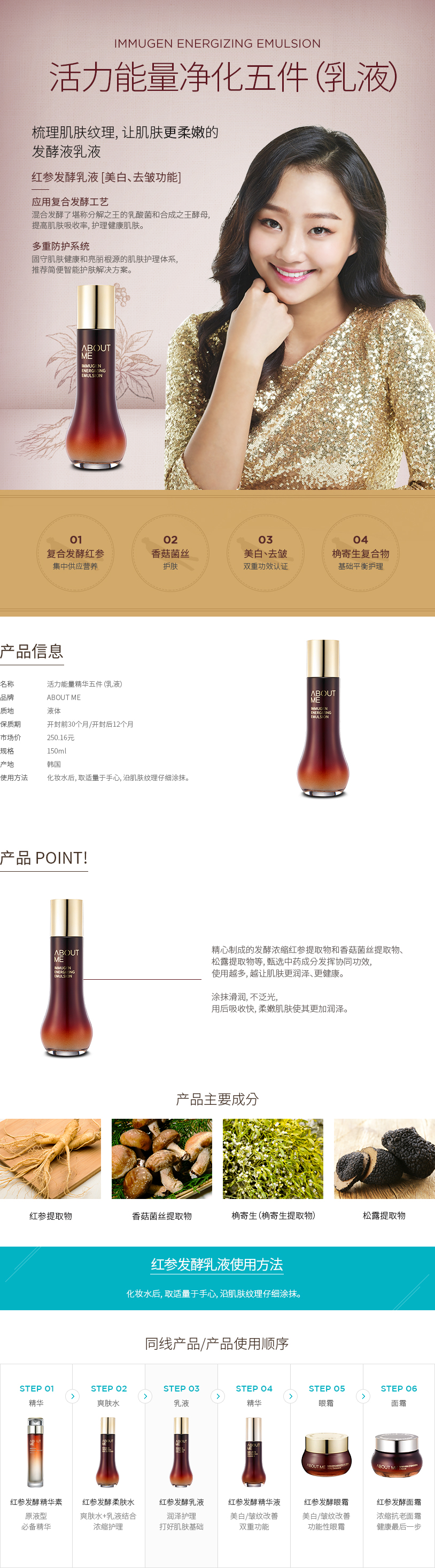 温和整顿肌肤纹理的高浓缩发酵成分乳液。