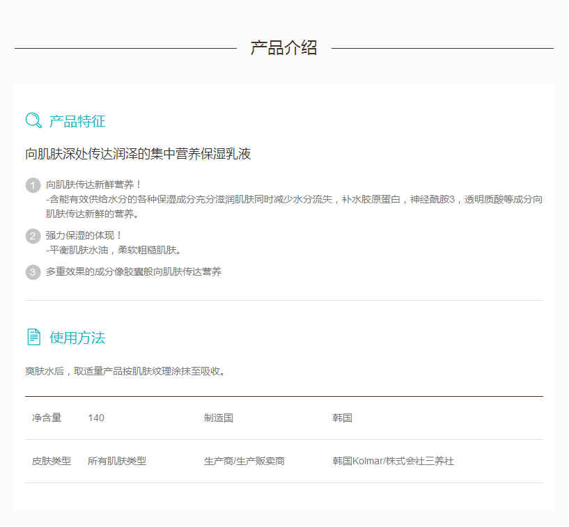 浓缩营养感滋润肌肤的集中营养保湿乳液