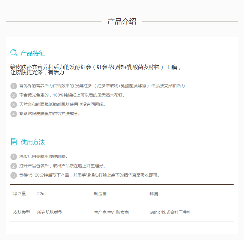 - 发酵红参精华面膜 22ml