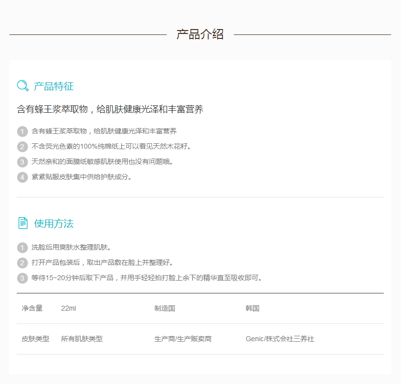 含有蜂王浆萃取物,给肌肤健康光泽和丰富营养