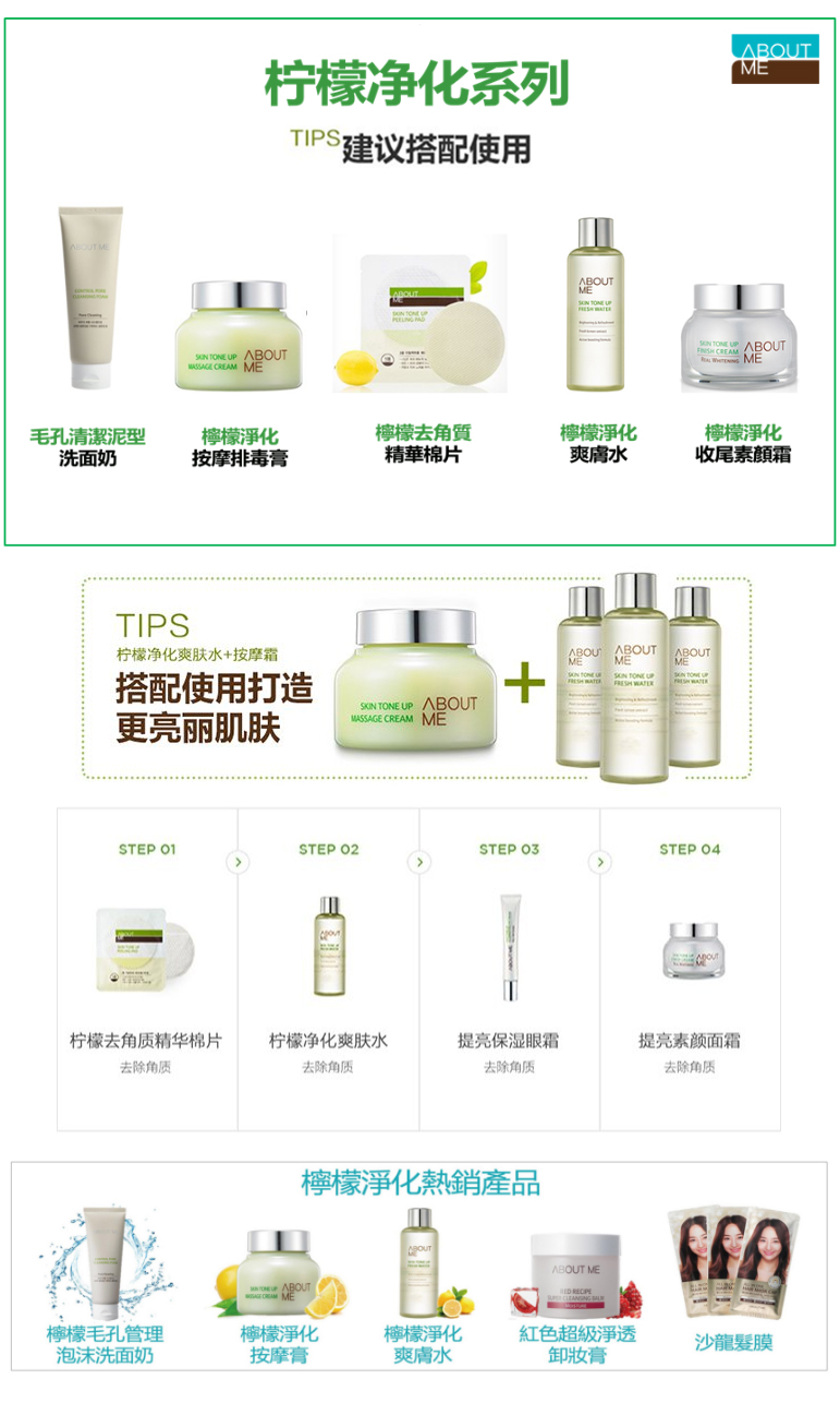 ABOUT ME 柠檬净化排毒提亮美白保湿护理产品