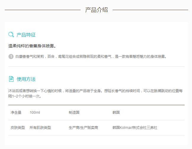 可爱柔软香氛身体喷雾 100ml