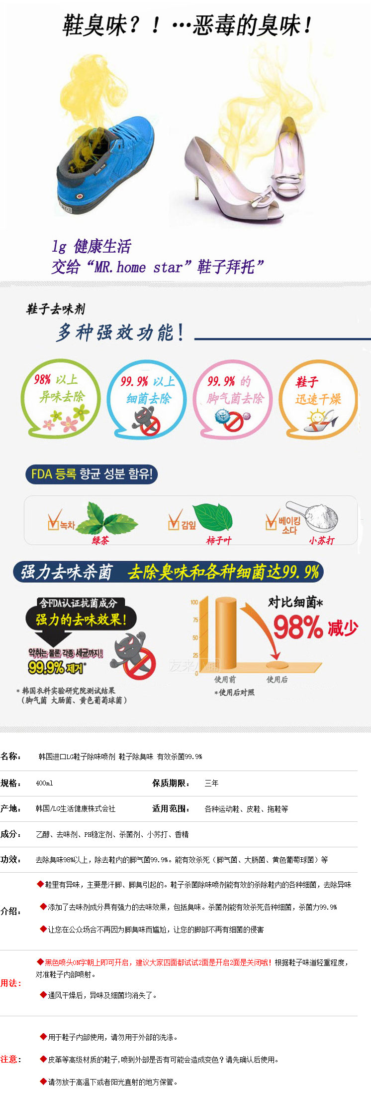 不仅可以去除99.9%的霉菌与细菌,还可同时去除脚臭!