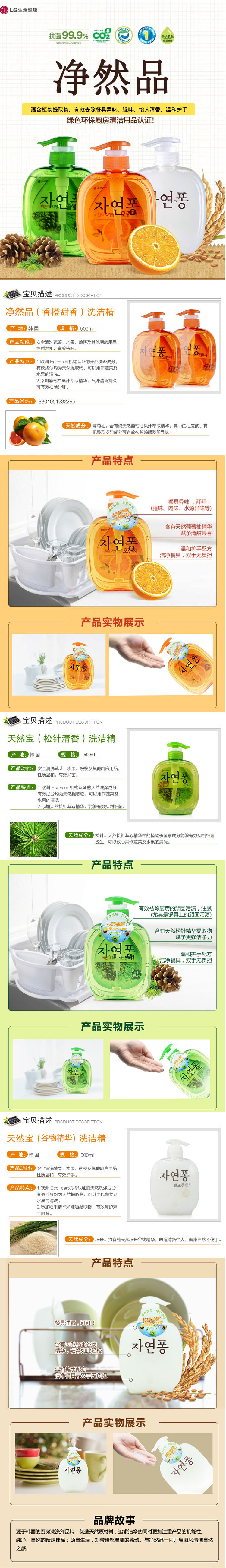 LG 净然品 谷物精华 松针 香橙 洗洁精 餐洗净 500ml