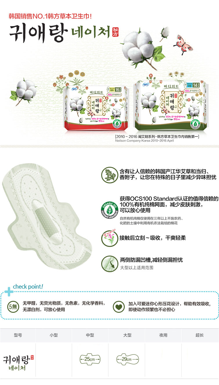 采用3强效艾草与100%有机棉巾体。舒适贴身, 无须担心异味
