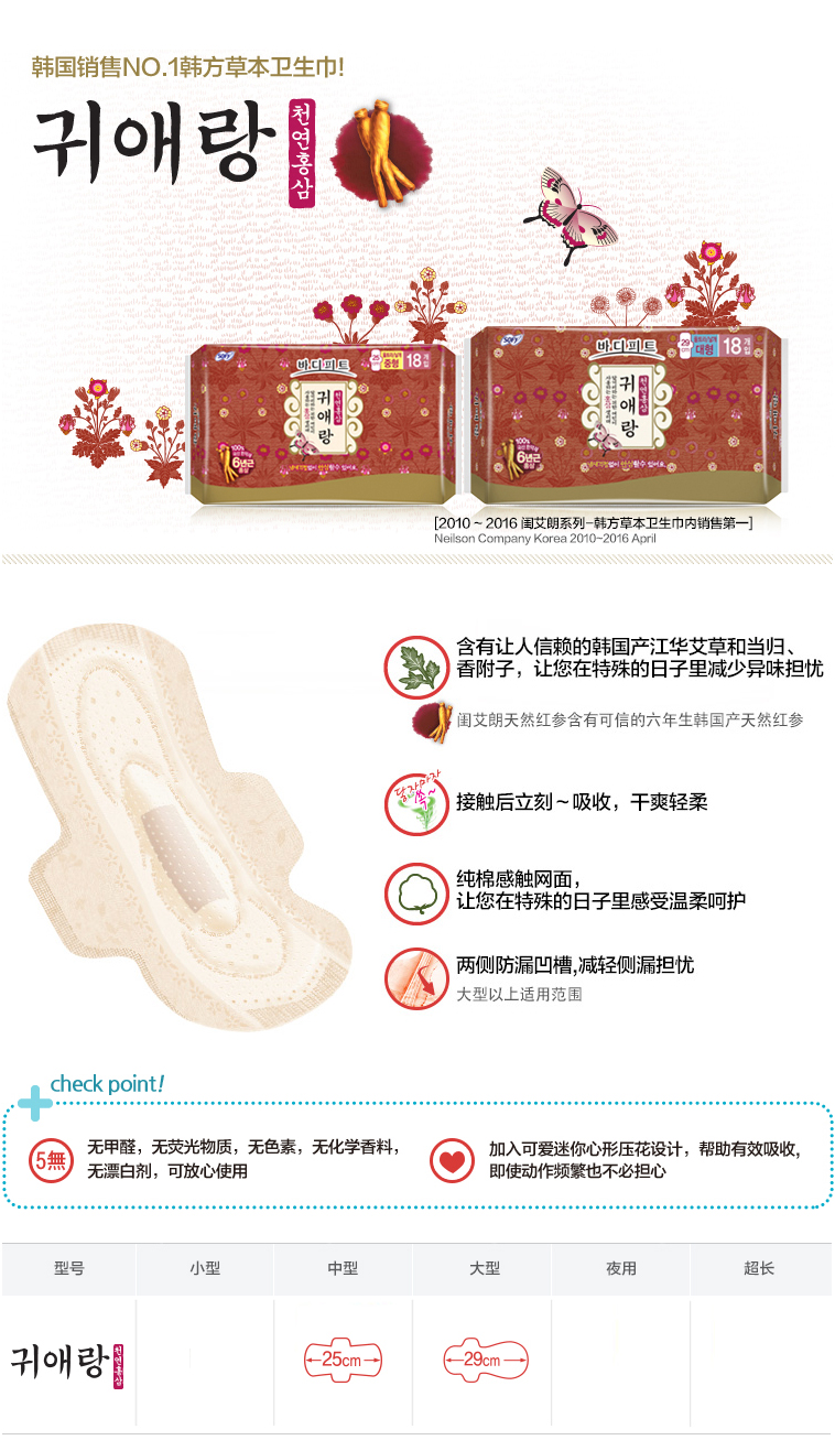 - LG 闺艾朗 天然红参卫生巾