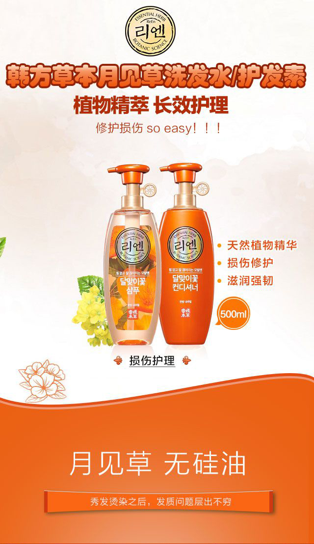 ?????橙色:LG ReEn 韩方草本月见草洗发露&护发素 500 ml