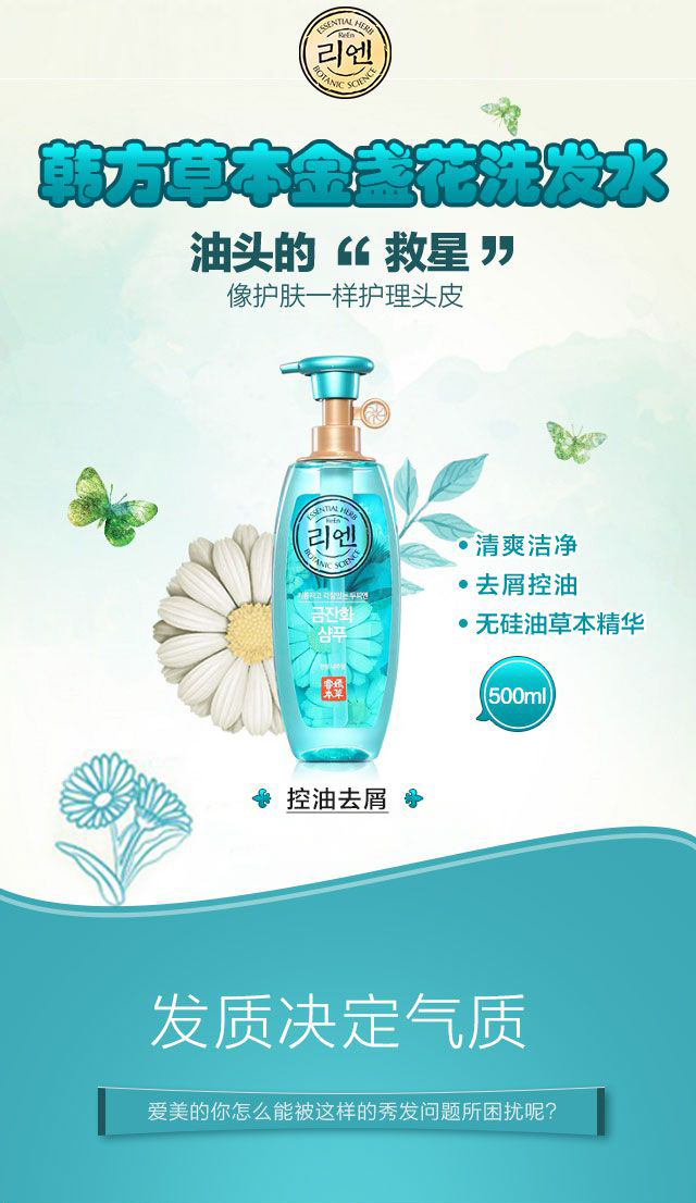 规??格:绿色:LG ReEn 韩方草本金盏花洗发露 500 ml