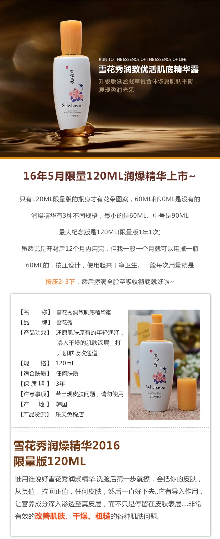 雪花秀 润燥精华 120ml
