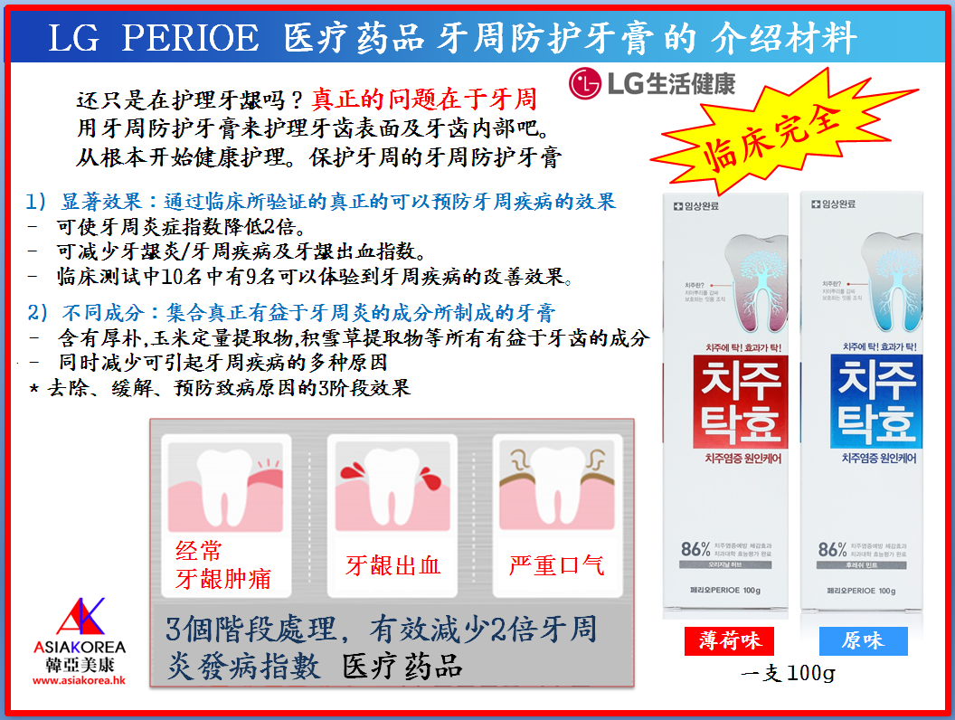 - NEW? LG PERIOE 牙周炎牙膏 (牙周防护牙膏) 100g 2种